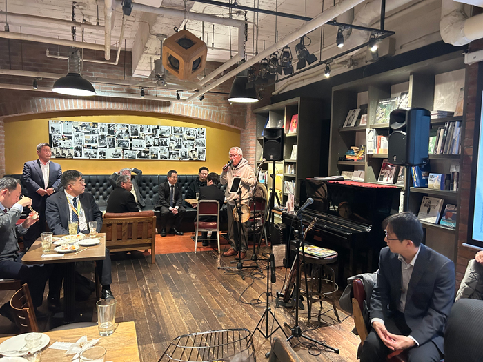 しばらくの談笑のあと、ミカ・ダ・シルバさんとホベルト・カサノバさんによるボサノヴァ演奏が静かに始まりました。演奏が進むにつれ次第に熱を帯びる会場の雰囲気が素晴らしかったです。